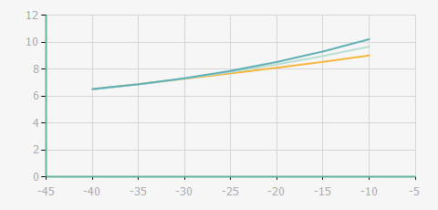 蒸發(fā)溫度 | 制冷量+/-5% | 能耗+/-5% | 現(xiàn)在能效+/-5% | 氣體流速+/-5% | 能效+/-7% | ||||